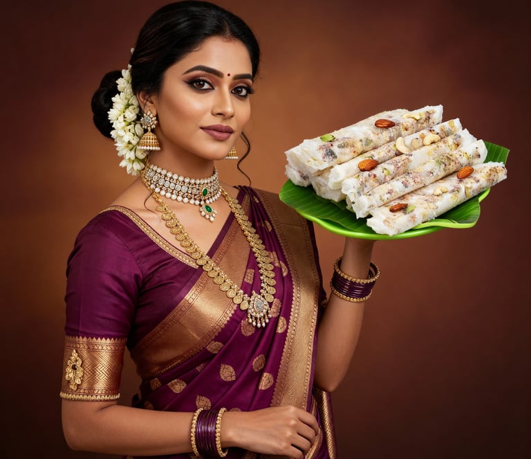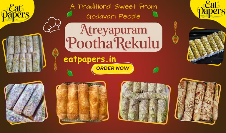 Classic sugar and jaggery pootharekulu made with organic ingredients.